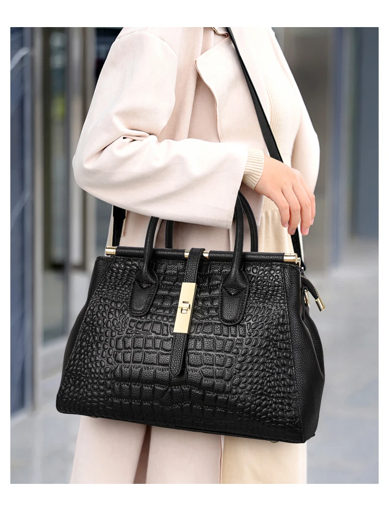 A Bolsa Feminina em Couro Genuíno traz um design clássico e sofisticado com padrão crocodilo, perfeito para mulheres que valorizam estilo, durabilidade e funcionalidade. Produzida em couro de vaca de alta qualidade, essa tote é macia ao toque e extremamente resistente, ideal para acompanhar sua rotina com elegância.